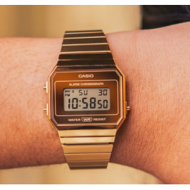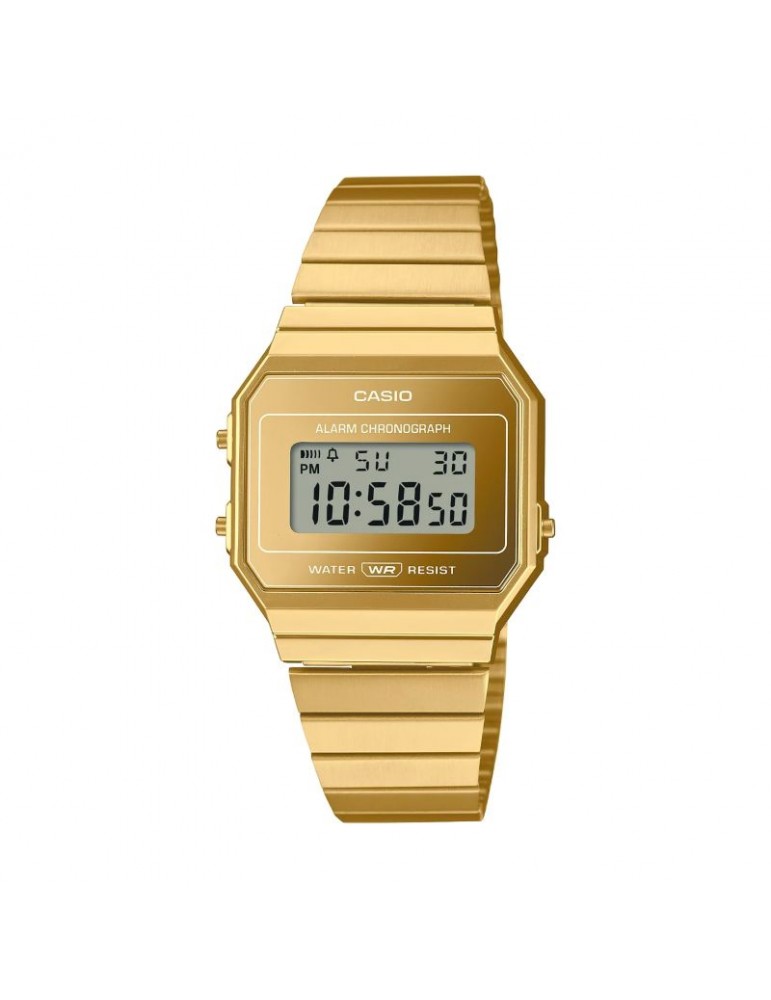 Reloj Retro CASIO A700WEVG-9ADF en resina Unisex. Elegancia retro con detalles dorados.
