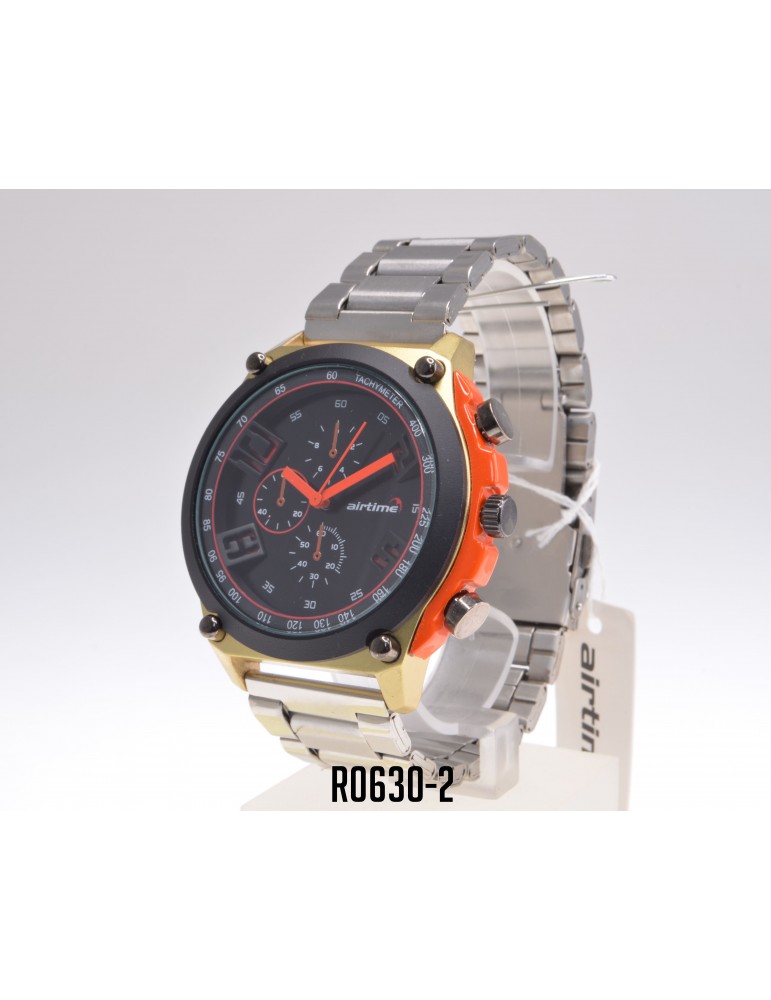 RELOJ AIRTIME ANALOGO HOMBRE NARANJA PLATEADO CAJA DORADA